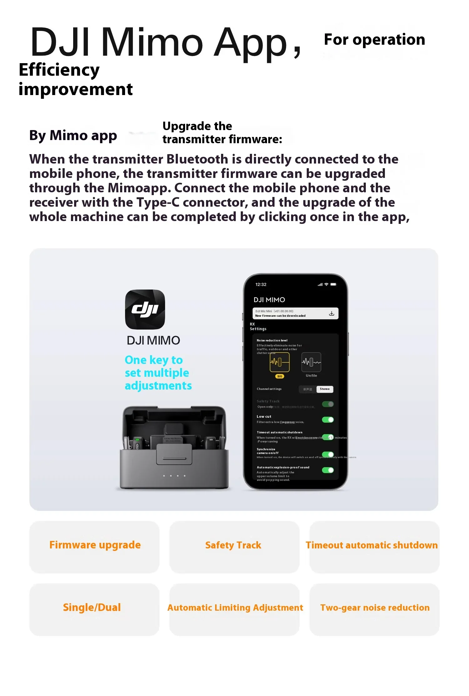DJI Mic Mini 2TX 1RX add Charging Case Two-Level Active Noise Cancelling 48-Hour Operation High-Quality Audio Stable Transmissio